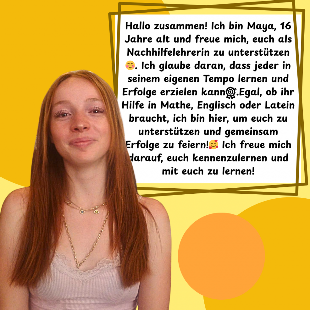 AUSGEZEICHNET Basierend auf 16 Bewertungen Gepostet auf Dı1aRa _BınıcıTrustindex überprüft, ob die Originalquelle der Bewertung Google ist. Tanja ist wirklich eine sehr gute Lehrerin. Sie kümmert sich nicht nur besonders um ihre Schüler sondern auch um ihre Lehrer. Wirklich sehr gut!!!Gepostet auf Reinhard MahlTrustindex überprüft, ob die Originalquelle der Bewertung Google ist. Hier gibts super NachhilfeGepostet auf Sabine GratzerTrustindex überprüft, ob die Originalquelle der Bewertung Google ist. Tanja wurde uns empfohlen und wir sind begeistert! Super individuelle und sehr herzliche Begleitung über Skype aufgrund der Entfernung. Das „Mathemonster“ wird immer kleiner und Lücken konnten schon aufgefüllt werden! Klare Weiterempfehlung - wir sind sehr froh, Tanja an unserer Seite zu haben!Gepostet auf Melanie GmeinerTrustindex überprüft, ob die Originalquelle der Bewertung Google ist. Tanja begleitet meine Tochter seit gut 5 Jahren und ihre Noten haben sich um 2 Noten nach oben verbessert. Sie hat die Mittlere Reife dieses Jahr bestanden und geht jetzt sogar auf die FOS. Tanja hat immer ein offenes Ohr. Sie ist sehr flexibel und sie ist sehr beliebt bei den Jugendlichen und bei den Eltern. Sie ist einfach die BesteGepostet auf Michaela HammerschmidTrustindex überprüft, ob die Originalquelle der Bewertung Google ist. Mein Sohn geht gerne ????! Themen werden verständlich erklärt und führten auch zum Erfolg ! Vielen Dank ????Gepostet auf Andrea B.Trustindex überprüft, ob die Originalquelle der Bewertung Google ist. Tanja ist uns eine große Hilfe. Sie ist freundlich, verständnisvoll und immer parat wenn es Probleme gibt. Ohne sie würde meine Tochter vor ihrem Abschluss verzweifeln. Vielen Dank dafür.Gepostet auf Nadi xoxoTrustindex überprüft, ob die Originalquelle der Bewertung Google ist. Beste Nachhilfe.Gepostet auf Bllo 2107Trustindex überprüft, ob die Originalquelle der Bewertung Google ist. Alles Passt! süße Hunde