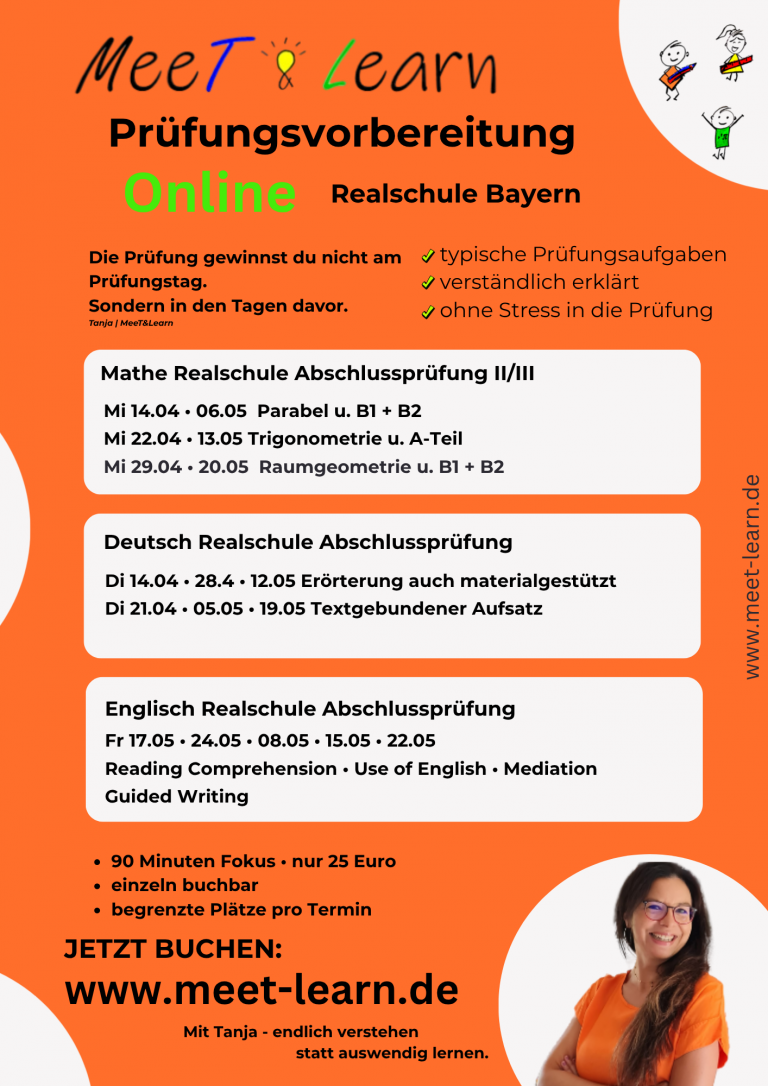 Schön, dass du da bist! Ich bin Tanja Lang und bei MeeT & Learn begleite ich dich mit Fachwissen und Geduld zu besseren Noten.